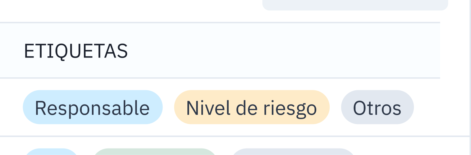 - Estandariza tus procesos: Una forma interesante de organización es establecer niveles de etiquetado por colores para facilitaros el trabajo. Por ejemplo, puedes ordenarlas por Responsable/Nivel de riesgo/Otros, y organizar así todas las peticiones de tu equipo de forma que al compartirlas sean reconocibles y podáis localizarlas rápidamente.